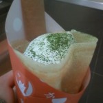 説明書きを読んでみますと、八橋クレープとは米粉の皮に豆乳クリームを使用し、八橋を挿したクレープのようでした。